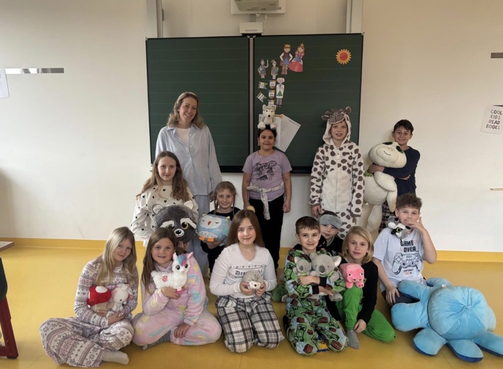 Der Donnerstag vor den Ferien stand in der 4b Klasse unter dem Motto „alle im Pyjama“ In Mathematik wurde mit Knabbergebäck gerätselt und abgerundet wurde der Tag durch das Taschenlampenlesen in der Bibliothek.